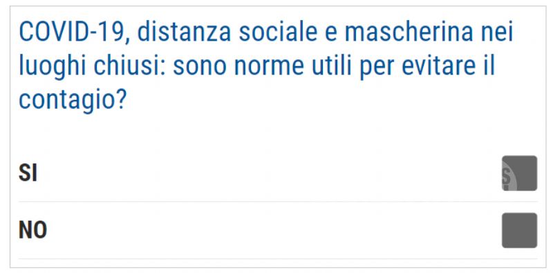 Covid-19, distanza sociale e mascherina nei luoghi chiusi: sono norme utili per evitare il contagio? Ecco il quesito del nuovo sondaggio per i nostri lettori.