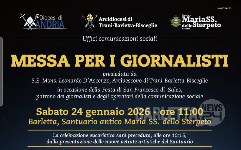 Così si legge in una lettera ai giornalisti dei direttori degli Uffici per le Comunicazioni Sociali delle due Diocesi: don Antonio Turturro, per Andria, e il diac. Riccardo Losappio, per Trani-Barletta-Bisceglie.